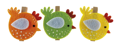 6 CLIPS POUSSIN JAUNE/VERT/ORANGE 3ASS